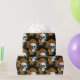 Skulls and Orange Flowers on Black Wrapping Paper