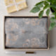 Light peach floral damask designs are surrounded by small abstract grey skulls on a light grey background making this an elegant, yet creepy Halloween-inspired design. Great for decoupage artwork, paper crafts, or gift wrapping.