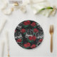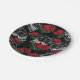 Skulls and Red Roses | Modern Gothic Glam Grunge Paper Plate