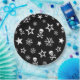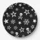 Skull and crossbones with pretty snowflakes and stars against a black background.
