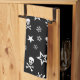 Skull and crossbones with pretty snowflakes and stars against a black background.