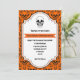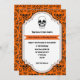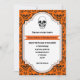 Skulls damask orange, black pattern & banner Halloween wedding invitation. This elegant design features a damask floral and skull pattern, a frame in the centre, a black skull and an orange banner. A contemporary yet classy design with two fonts: a vintage and a cool one. Elegantly spooky design, perfect for Gothic or Halloween fall/autumn weddings. It is a fully customisable template and is part of a wedding set.