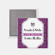 Skulls damask purple, black pattern & banner Halloween wedding Save the Date magnet. This elegant design features a damask floral and skull pattern, a frame in the centre, a black skull and a purple banner. A contemporary yet classy design with a vintage style font. Elegantly spooky design, perfect for Gothic or Halloween fall/autumn or winter weddings. It is a fully customisable template and is part of a wedding set.