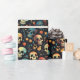 Celebrate Halloween in style with our vibrant Halloween wrapping paper featuring a striking black background adorned with colourful, intricately decorated skulls in orange, red, blue, and white. Intertwined with whimsical orange and yellow flowers and leafy vines, this eye-catching pattern offers a perfect blend of edgy and playful for all your spooky gift-giving needs. Ideal for parties, gifts, and seasonal decor!