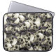 Greyscale black and white goth skull laptop travel sleeve. Unique skull pattern laptop sleeve accessories gifts for Christmas or any occasion.