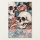 This design features skulls with pink flowers and blue leaves. It has a transparent section specifically for personalization. The line and color, as well as the font, text, and color may all be changed to suit your needs.