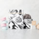 This design features illustrations of Halloween icons such as pumpkins, bats, black cats, broomsticks, spiders cauldrons, witches hats and more in black on a white background. Fab for Halloween parties and celebrations.