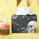 Add a personal touch to your gifts with this skulls and flowers gift wrap. This gift wrap features skulls and floral elements with a night sky background. This gift wrap will make a beautiful and unique addition to your gifts. Please see the coordinating gift tag for your complete gift-wrapping needs.