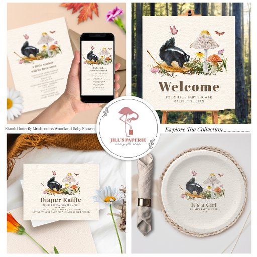 Skunk Butterfly Mushrooms Woodland Baby ShowerDesigned by Jill P.