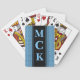 Cool deck of cards with sky blue and black pattern and a black centre stripe with customisable text. Change the initials, or add more text, it's easy! Create personalised gifts of playing card decks. Such a unique gift idea!