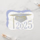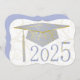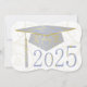 Floral designs on graduation cap, background and year. Sky blue graduation cap on a white background. The back has a sky blue background with gold lettering for the graduation announcements.