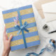 Sky Blue and Gold Glitter Stripes Wrapping Paper
