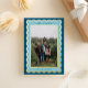 Modern and festive, this aqua blue and navy holiday photo card makes your family the star within a preppy and trendy scalloped frame in real, shiny, metallic gold foil for that high-end designer look. With charming greeting and name text on the front, the back of the card has ample room for a longer message with family updates and anything other messages of cheer you want to share with family and friends over the Christmas season. Pretty, wintery shades of light blue and navy set a festive tone to go with almost any vertical orientation portrait photo!