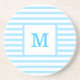 Sky Blue and White Stripes Custom Monogram Coaster
