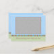 Modern baby boy birth announcement in blue, brown and green. Customise this card template with a photo to the front and the stats to the back.