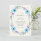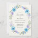 This design features a delicate arrangement of sky blue and lavender blossoms with subtle green foliage. The airy watercolor effect creates a romantic and serene mood, perfect for a spring or summer occasion.