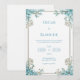 Sky Blue Blossom Elegant Gold Frame Wedding Invitation