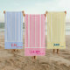 Whether you’re headed poolside or to a beach bachelorette weekend, Sky Blue City Chic Striped Towels bring the bold, personalised with trendy Guest Check shadow lettering. Big, soft, and totally group photo ready — these towels are ready for all the fun. || Click on "personalise this design" to add your details. Explore the collection for matching shirts, totes and tumblers in this design. Please message us with questions or Custom Design requests.