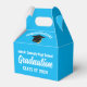 This modern sky blue and white custom senior graduation party favour box features your high school or college name for the class of 2025. Customise with your graduating year under the chic handwritten script and black grad cap for a great personalised graduate keepsake gift.