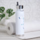 The bottle looks even better in real life. The ice cubes I put in lasts all day! I have my bottle with me all the time. It's summer and having something cold to drink feels amazing. With this bottle I always have something super cold. I have only tried the hot drink once and it lasted a long time as well. The color blue is a navy blue and the white printed on it is vibrant. It printed perfectly. I love my personalized smile water bottle.