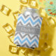 Sky Blue, Dark Grey and White Large Chevron Zig Zag Pattern, Dark Grey Ribbon Name Monogram Label