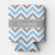 Sky Blue Dk Grey Wht LG Chevron Grey Name Monogram Can Cooler
