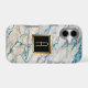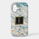 Here is an attractive phone case that adds a bit of blue sparkle on a pale white and gold faux marble background to make it unique. At the centre is your monogram in gold on a black square banner that is double lined in gold. Beautiful! *Please note - the metallic look is simulated, and the case does not contain metallic paint, but only the image.