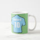 Football fan coffee mug. Light Sky Blue Football Shirts design for Fans and Supporters to show the team they follow. Personalise with name choice. Light blue football shirt.