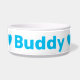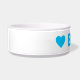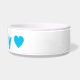 This ceramic dog bowl has two sky blue hearts and can be personalised with your dog's name. Choose any font style and colour that you prefer instead of the blue shown here. You can move the hearts around and adjust their size also to make this dog dish just right for your dog. Makes a unique and fun gift for any dog parent!