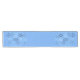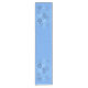 Beautiful table runner in beautiful shades of blue with symbols of different religions and a labyrinth in the background. Suitable to use as an interfaith altar covering.