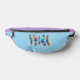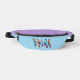 Add good vibes and color therapy to your life with this boho fantasy feather art. Gorgeous, upright, multicolor feathers grace the front of this sky blue and lavender fanny pack. This feel good colorblock waist bag is perfect for workouts, festivals, concerts, the beach, travel and anytime you want to go hands free.