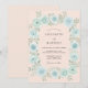 This design features a soft wash of pale apricot as a backdrop for a delicate arrangement of watercolor roses. The flowers are rendered in a light aqua blue hue, complemented by muted sage green leaves and stems. The overall aesthetic is romantic and airy, evoking a serene spring morning atmosphere. This botanical composition creates a peaceful and elegant visual for a seasonal ceremony.