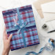 Sky Blue Navy Burgundy Preppy Madras N Monogram Wrapping Paper
