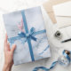 Sky Blue White Grey Marble Shiny Brushes Wrapping Paper