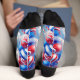The Sky Full of Freedom Socks feel like a summer soundtrack brought to life. Set against a bright blue sky filled with drifting clouds, fireworks bursts, streamers, confetti, and bold red, white, and blue balloons, this design pulses with rhythm and movement. It is the visual equivalent of a marching band crescendo, a drumline echoing down Main Street, and fireworks cracking in perfect time with the music.