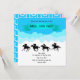 Celebrate the excitement of the annual derby with this whimsical sky-themed invitation. Featuring a cheerful bright blue background with puffy clouds and a teal banner, this design includes a line of racing horse and jockey silhouettes galloping across the horizon. Perfect for hosting a lighthearted, "mint juleps and hats" event, the square card also includes a charming white horseshoe pattern on the reverse side. Fully customizable for your unique details, this invitation promises a high-flying celebration.