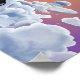 "Skybound Serenity" depicts four skydivers leaping into a world of vibrant, puffy clouds beneath a breathtaking sunset. The piece captures the exhilaration of flight and the peaceful beauty of nature, blending the rush of adventure with the calming colours of the sky.