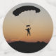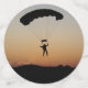 Skydiver parachute drop at sunset offers a great silhouette just before landing. Perfect git for aviation enthusiasts, skydivers, parachutists, and those interested in the military, flying & sky diving.