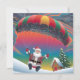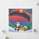 The image is generativecontent. I had wanted to make an images with santa parachuting into his sleigh with a gingerbread tree house in the background. That is not how this image turned out. I think it kind of looks like santa is sitting on the snow but, it also looks like he might still be floating through the air.