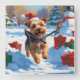 Skye Terrier Running in Snow with Christmas Hat Square Wall Clock