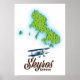 Skyros Greece island map with a beautiful prop plane.