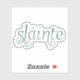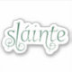 "Sláinte" sticker in a Celtic-inspired font. The word "Sláinte" means "health" in Irish, and is a common toast and salutation