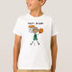 T-shirt with a boy basketball player with green jersey and shorts and text that reads "Slam Dunk!".