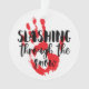Slashing through the snow, horror movie pun bloody handprint Christmas tree ornament