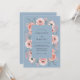 This watercolor design features a serene palette of slate blue and soft peach. Delicate pink anemones and roses create a lush floral arrangement that evokes a romantic spring atmosphere. Muted greenery and soft brushstrokes add an ethereal touch to the botanical artwork, capturing a timeless aesthetic.