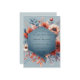 This design evokes a moody and romantic atmosphere with its rich, autumnal color palette. A stunning arrangement of painted terracotta and ivory anemones flourishes against a deep slate blue background. Delicate bluish-green foliage adds depth and contrast, creating an elegant and artistic botanical statement for your special day.