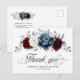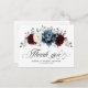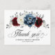 Slate, Burgundy, White ivory themed floral bridal shower thank you postcard featuring elegant bouquet of burgundy, slate, dusty blue, ivory roses and peony flowers and dusty green eucalyptus leaves. Please contact me for any help in customisation or if you need any other product