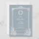 This dusty blue vintage ornate frame wedding photo invitation design sets a refined and romantic tone for your special day, perfectly embodying timeless classic elegance with a touch of French country charm. Featuring a soft dusty blue background adorned with delicate white line-art botanical borders, an intricate vintage ornate frame, and a custom monogram at the center—paired with a dedicated photo slot on the reverse to showcase your favorite couple portrait—this design blends elegant script calligraphy with understated serif fonts for a polished, sophisticated feel.