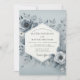 Embrace a serene and romantic atmosphere with this elegant floral design. A sophisticated monochromatic palette of dusty slate blue and soft white creates a dreamy, ethereal quality. Lush, painterly peonies and delicate leafy botanicals cascade gracefully, evoking a sense of timeless beauty for a winter affair.