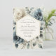 Evoke timeless romance with this elegant painterly design. Lush, dusty slate blue dahlias and creamy ivory roses bloom softly against a backdrop of muted greenery. The soft, artistic composition creates a sophisticated and dreamy atmosphere for your nuptials.